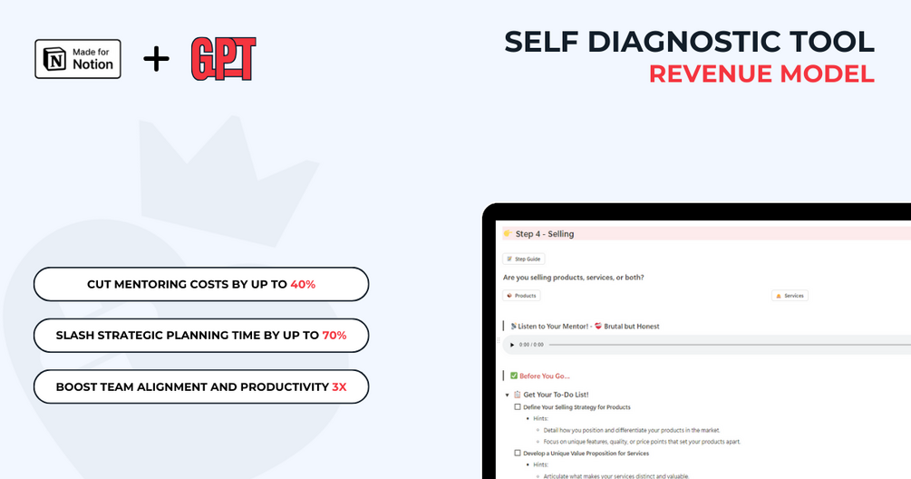 You know that creating a revenue model is just one step, right? It’s only a part of building a business that scales. If you want to go all the way, check out other Self Diagnostic Tools here to ensure your startup's foundation is rock-solid.